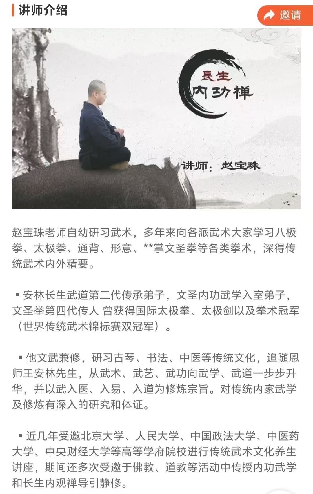 长生内功禅之姓名法诀筑基功(功法篇),赵宝珠老师主讲