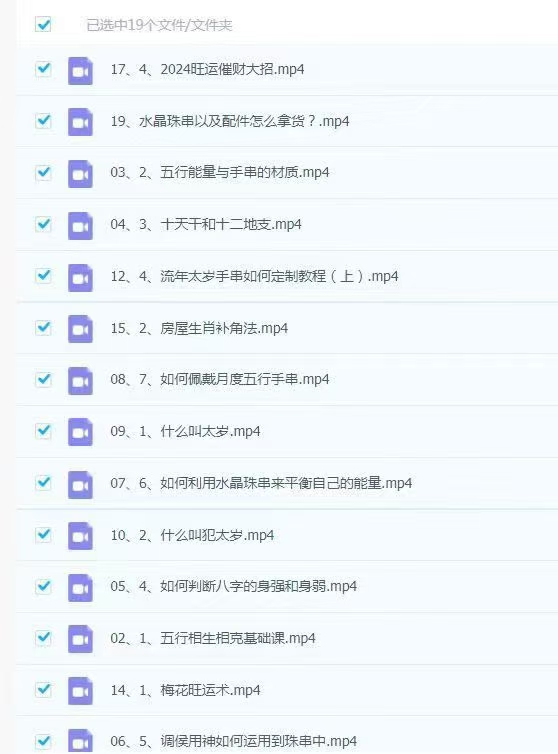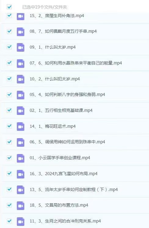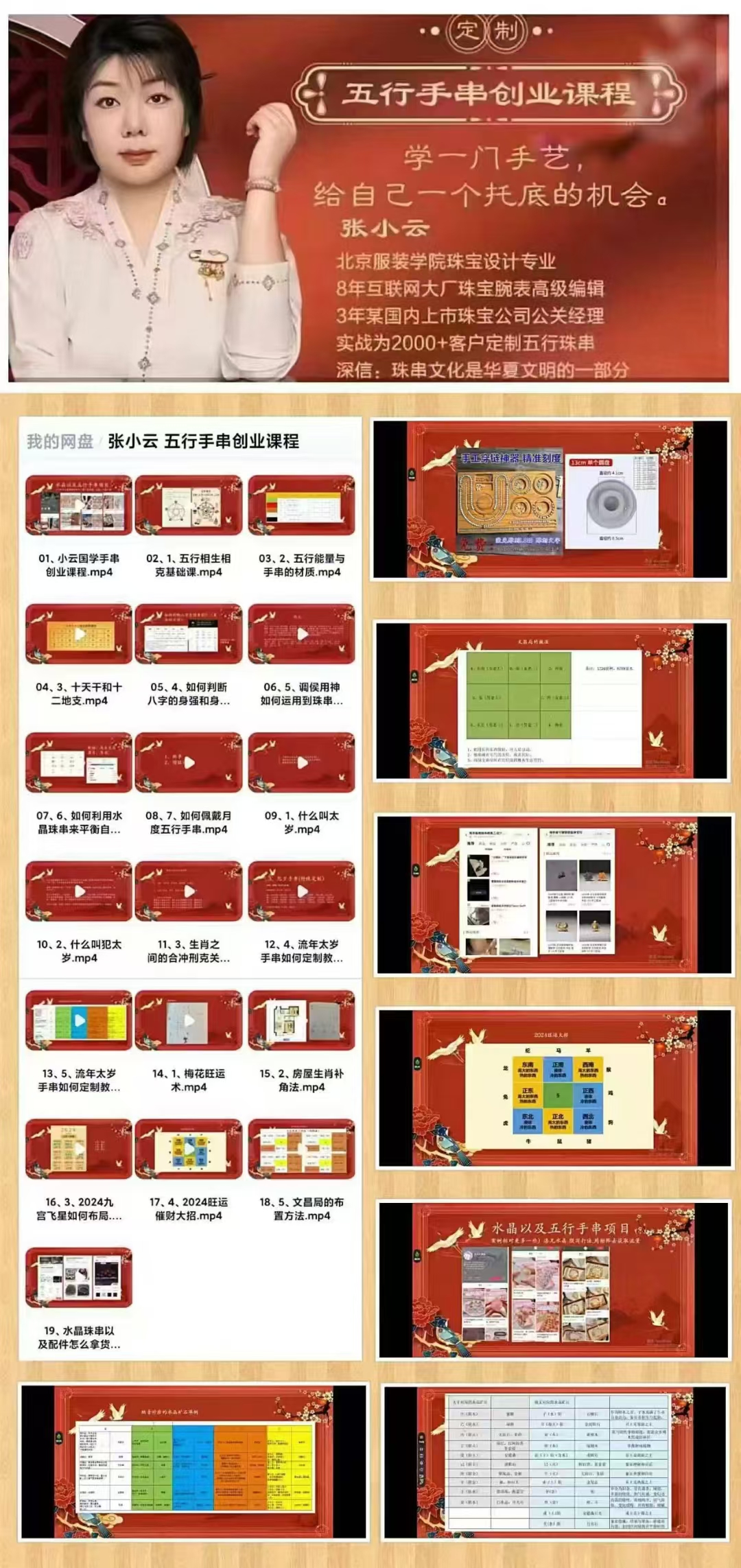 张小云五手行串创业课,视频19集学门一手艺,给自己一托个底的机会珠卖串的是什么?我认为是绪情价值1.对五串行珠感兴趣小的白2.在照顾孩的子同时想拥有一小份事业的宝妈想给自找己一份副托业底的职场人3.珠宝实体从店业者创路业上这么孤单,难道你不要需一个身终陪练吗?课设程置1.五行能量珠串定教制程(全干是货)2.流年岁太珠串定制教程(独家干货,外面不学到)3.12生肖守护神制定教程(快年过了,这个用课得上)4.五色财神素元在珠串中应的用5.宗教元素的配在件珠串中的应用6.家居水风与水晶阵的用使教程(独干家货,外面不学到)……
