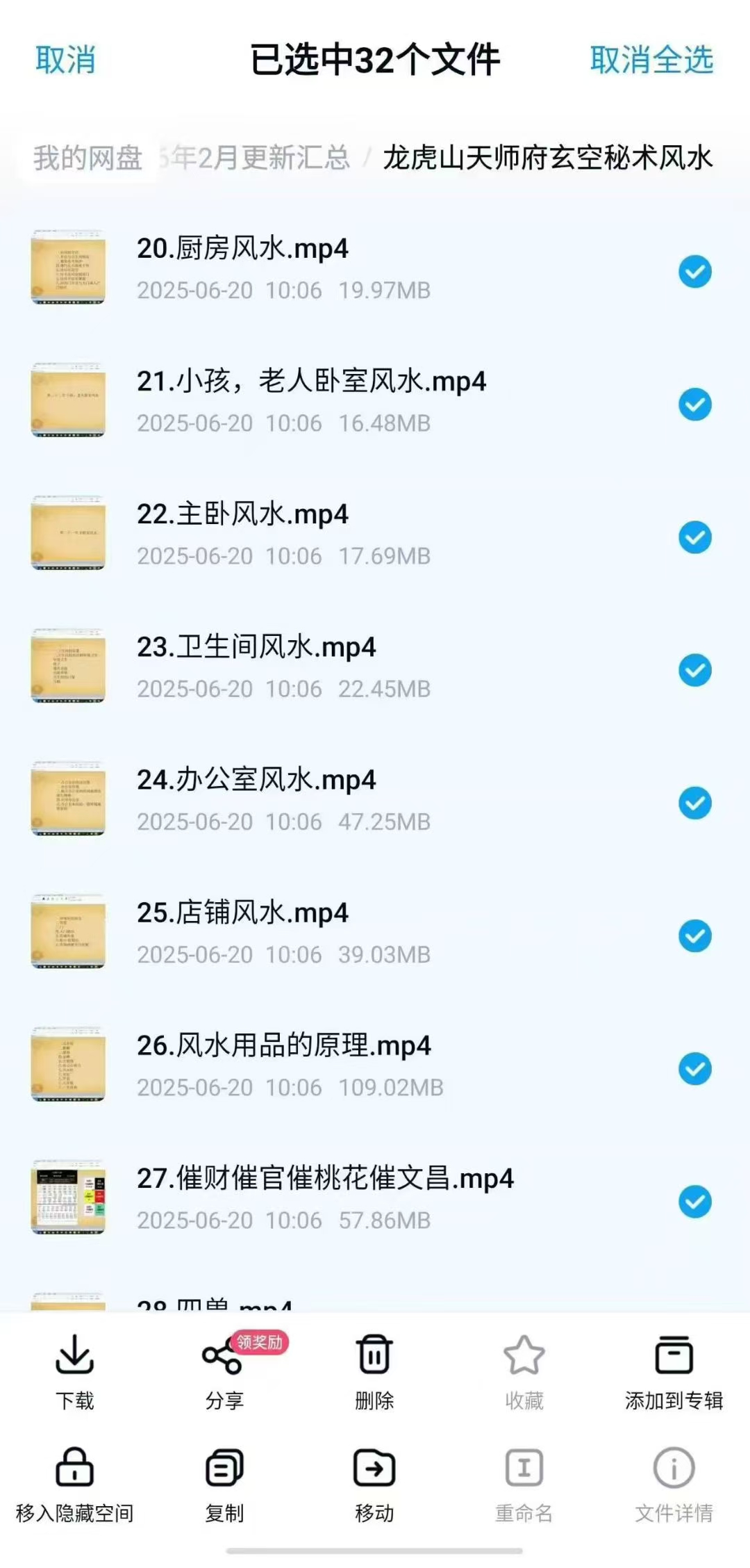 龙虎山天师府,玄空秘术风水32集视频课具体目录如下图:看九星八卦了阳宅风水。制煞平凶,催官,催财,催桃花,催文昌。引化,定人!!1.风水介绍.mp42.各类煞及化解3.风水师护身法门4.阴阳五行5.天干6.地支7.八卦8.九星9.玄空飞星轨迹图10.定向11.下卦与替卦12.宅运煞星13.九星组合14.玄空详论15.玄空实战16.房门风水17.窗户风水18.阳台风水19.客厅风水20.厨房风水21.小孩,老人卧室风水22.主卧风水23.卫生间风水24.办公室风水24.办公室风水25.店铺风水……本内容纯属虚构,如有雷同纯属巧合