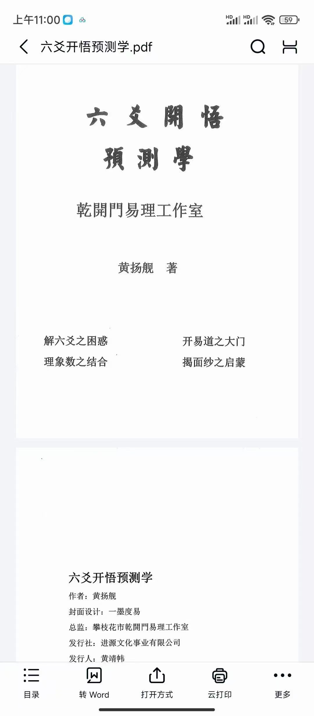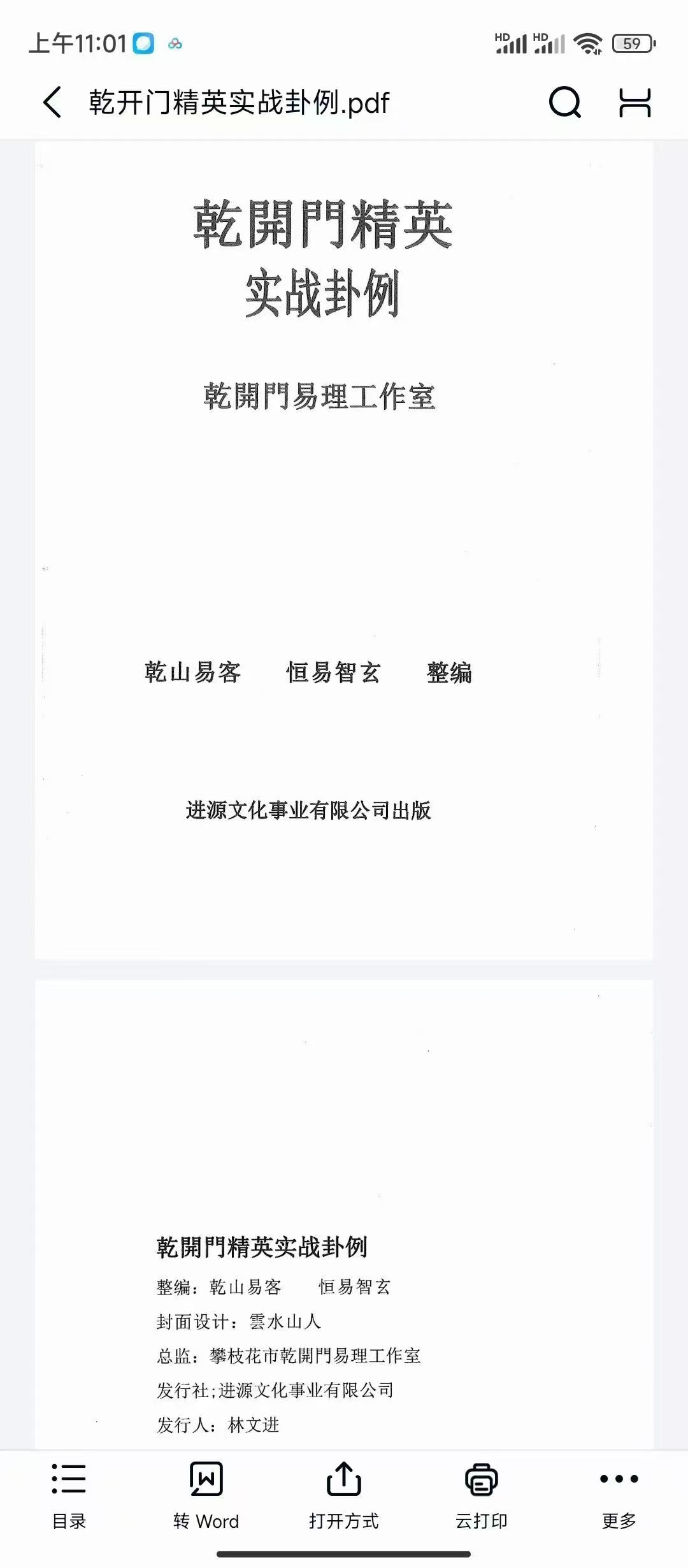 六爻开悟预测学+乾开门精英实战卦例乾开门易理六爻预测两本电子版一,六爻开悟预测学二,乾开门精英实战卦例乾閣門易理工作室乾山易客 青年时期开始研习易学应用体系,主张易学研究应当与时俱进、重在理用兼顾,在传统派六爻占卜预测方面有扎实的理论功底及丰富的实战经验,现为乾開門入室弟子,授业恩师四川省黄扬舰、屈亚霏