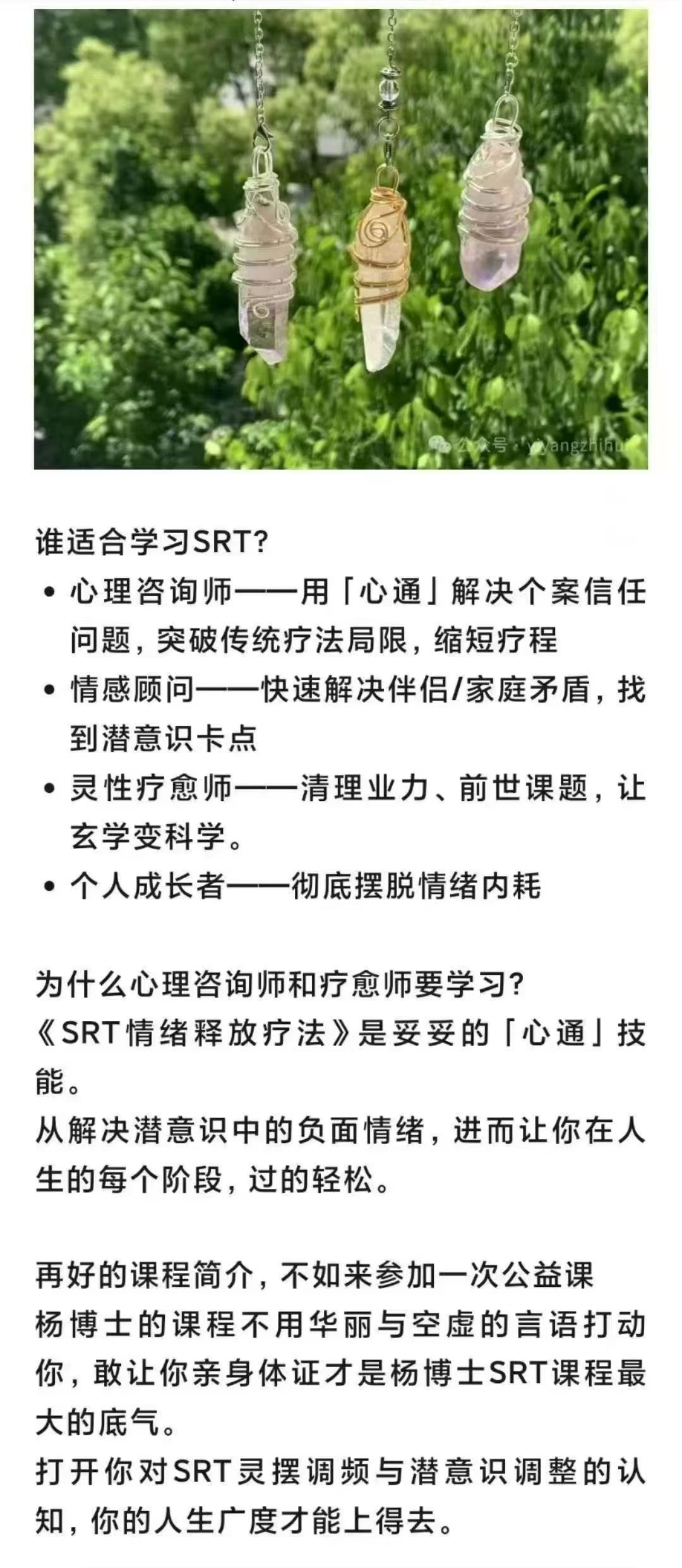 杨飞鸿掌握 心通SRT情绪放释疗法 视频音频+课件人遇生到的所有事情,都是情绪作在怪。走不出分手的伤痛,走不出原家生庭的伤痛,…你做所的每个决定,背后都有潜意在识主导,而你又情被绪所左右。《SRT情绪释放疗法》就是在帮你理清这些情绪身为咨询师疗和愈师,拥有「心通」能力,你才能快速得获客户信任,财富能量才会被化显