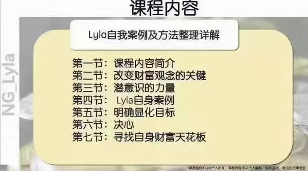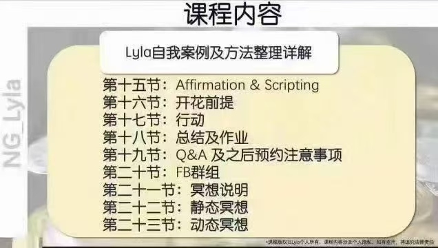 财富显化!b站up主 Lyla 『生而富裕 财富』VIP 高端自学课程 23集视频