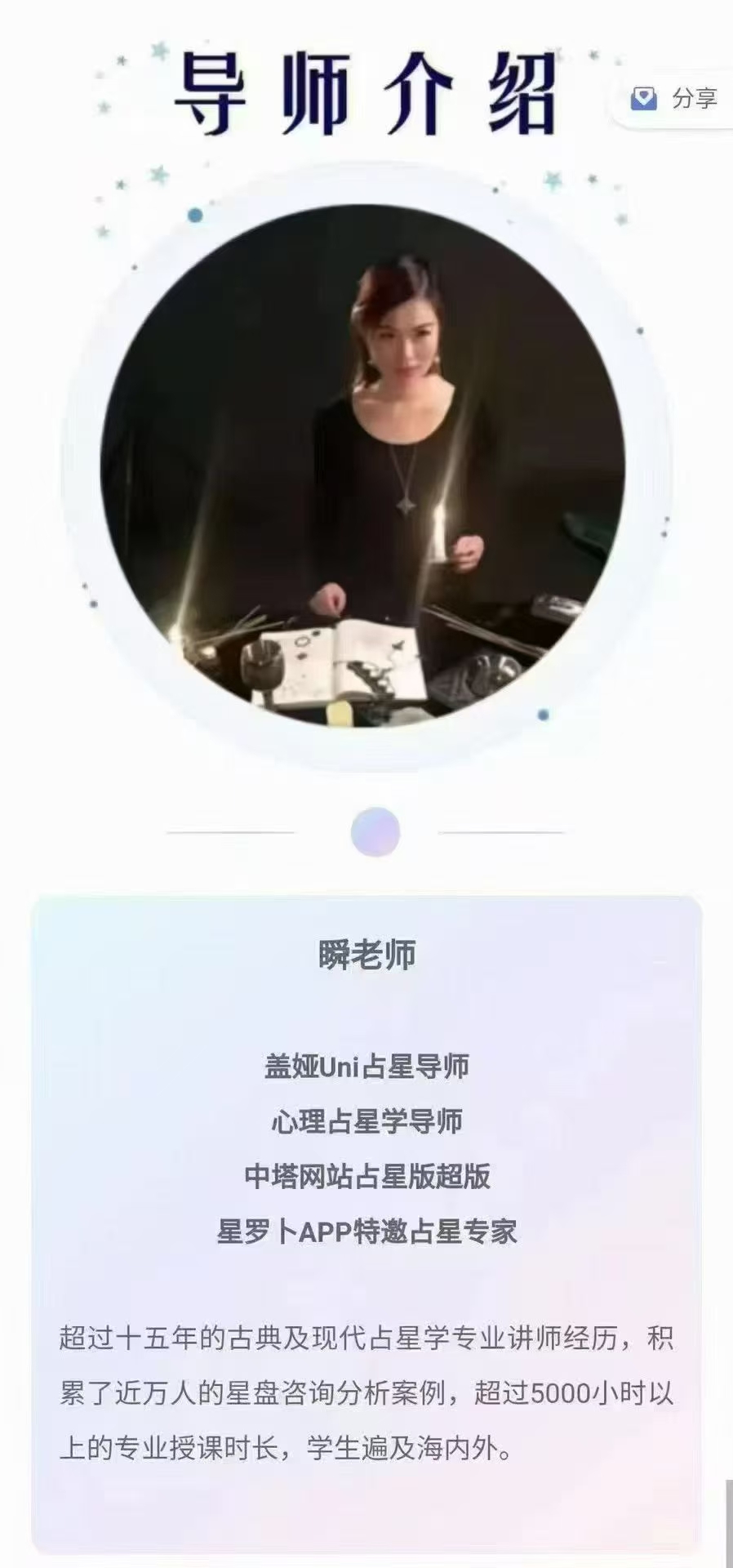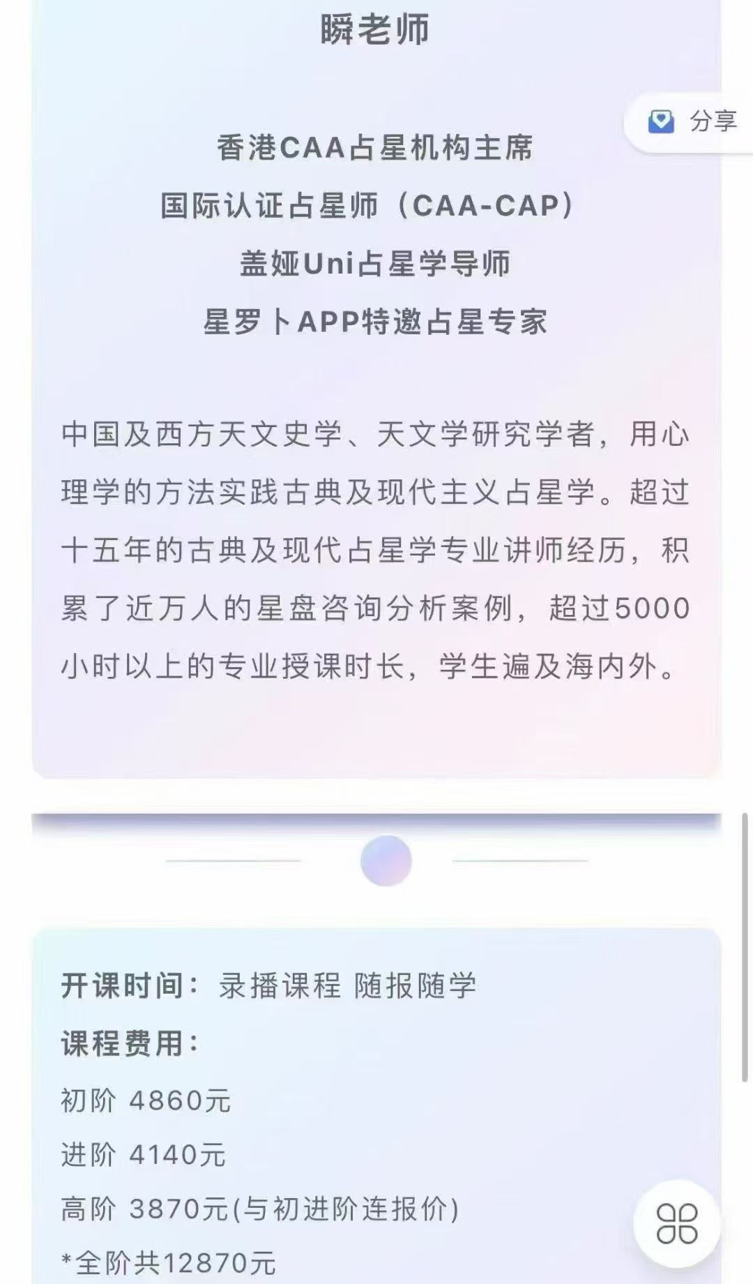 职业占星师「初阶+中阶+高阶课」三套视频合集盖娅学院瞬老师原价1.2W好课推荐:现代占星里比较全面很不错的课程,讲解的也很细致落地本故事纯属虚构,如有雷同纯属巧合 资源下载资源下载价格29.9元立即购买 或 升级VIP后免费升级VIP客服QQ:39559005