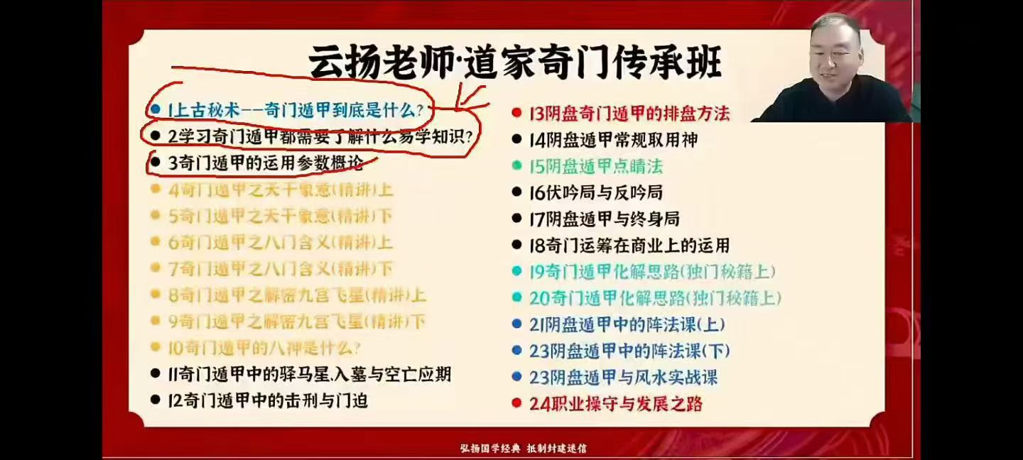云扬《奇门遁甲》教学视频24集,每个视频时长1小时左右